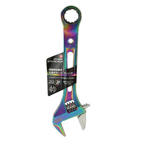 藤原産業藤原産業 SPD-30WMP SK11 ワイドモンキレンチ 虹のように様々な色が調和し、華やかさと鮮やかさが融合した神秘的な美しさが特徴的な虹色チタンコーティングを採用しました。 〈用途〉六角ボルト・ナットの締付け、緩め作業。 ■SPD-30WMP SK11 ワイドモンキレンチ 機能 ・幅厚ハ...