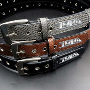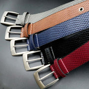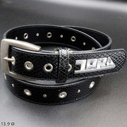 恒例のアニマル柄ベルト。ダークなカラーと凹凸のある素材感がファッショナブル。
