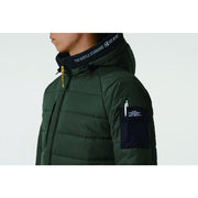 防水(耐水圧10,000mm・透湿性5,000g/㎡/24hrs(TPUラミネートコーディング))、撥水、防風フードスピンドル、レベルブック・Phone収納ポケット(右)、内ポケット(左)、内ペン差し(左)、ビックプリント、袖ペン差し(左)、袖ポケット(左・マジックテープ付)、両脇ファスナーポケット、両脇ウォームポケット、カフスアジャスター、ダブルジップ、ウエストドローコード |