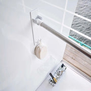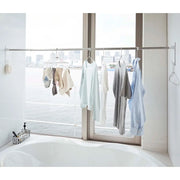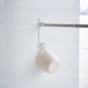 洗濯物が多くて室内物干しが足りない!というお悩みを解決。浴室の好きな位置に簡単取り付けできる便利なフック付きの物干し竿ホルダー。